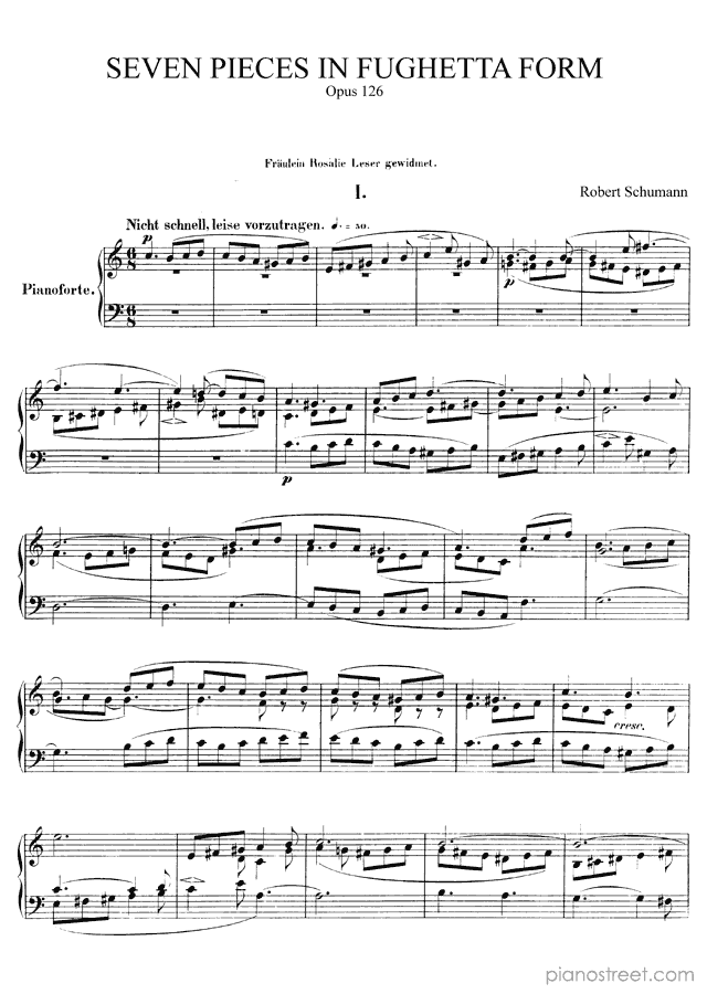 Schumann: Piece in Fughetta Form Op. 126 No. 7 in A Minor (published in 1853) . DOWNLOAD piano sheet music from Piano Street digital sheet music library.