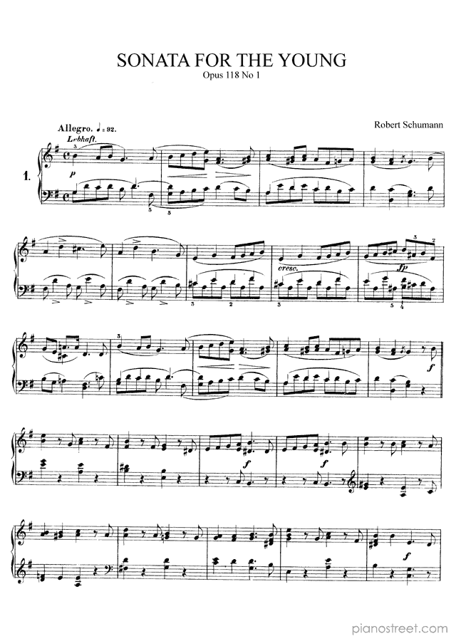 Sonata in G Major - Op. 118 No. 1 is a piano piece by the early romantic composer Robert Schumann who lived between the years 1810 and 1856.