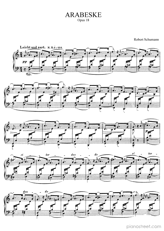 Schumann: Arabesque Op. 18 in C Major (published in 1839) . DOWNLOAD piano sheet music from Piano Street digital sheet music library.