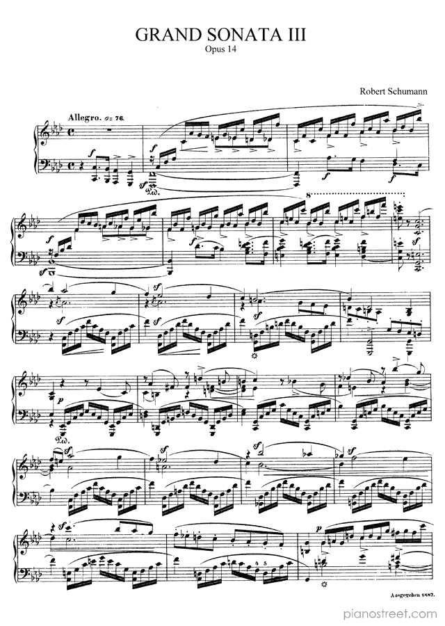 Robert Schumann: Grand Sonata 3 Op. 14 in F Minor - piano sheet music to print instantly. This piece is level 8+ and was composed during the Early Romantic period.