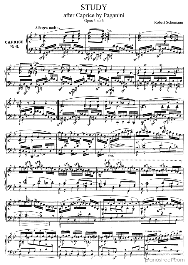 Caprice in G Minor Op. 3 No. 6 by Robert Schumann. Sheet music and recordings of thousands of piano pieces by Robert Schumann and many other composers to view in digital devices, print or listen to.