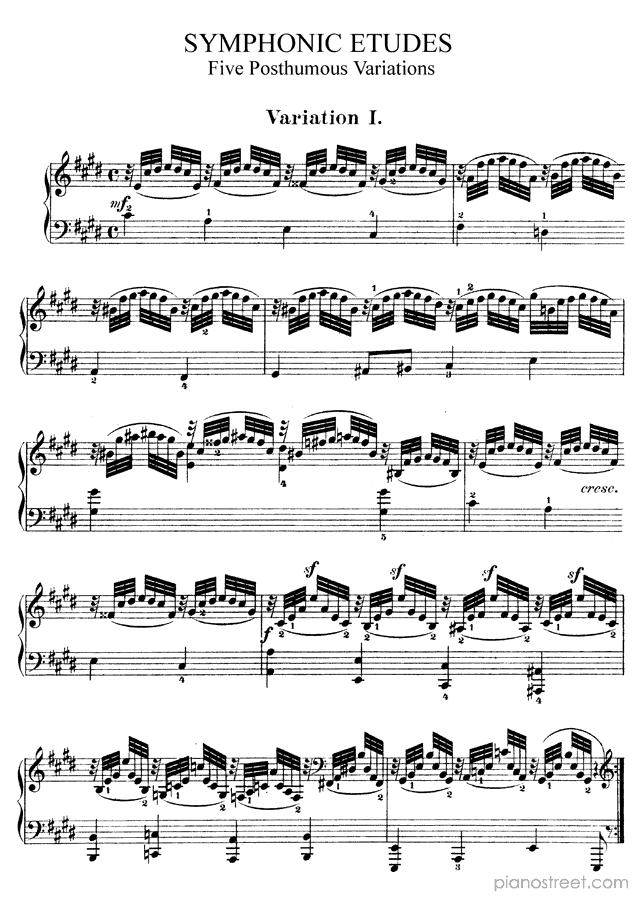 Symphonic Etudes - five posthumous variations in C-sharp Minor - Op. 13 is a piano piece by the early romantic composer Robert Schumann who lived between the years 1810 and 1856.
