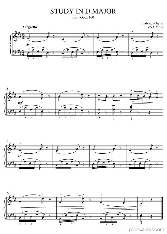 Study in D Major in D Major Op. 160 by Ludvig Schytte. Sheet music and recordings of thousands of piano pieces by Ludvig Schytte and many other composers to view in digital devices, print or listen to.