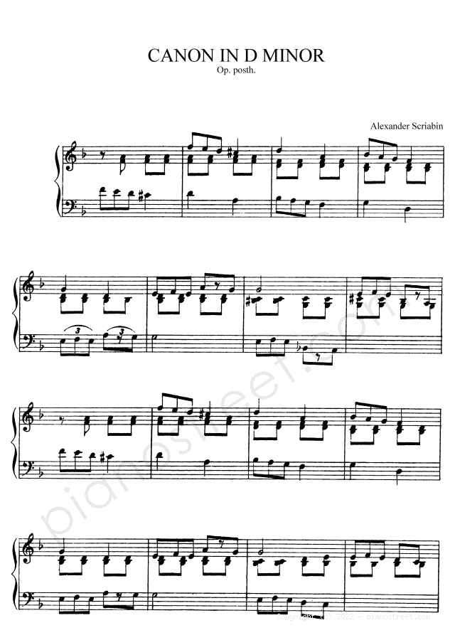 DOWNLOAD Canon in D Minor WoO 1 by Alexander Scriabin (published in 1883) . High quality classical piano scores from the Piano Street sheet music library.