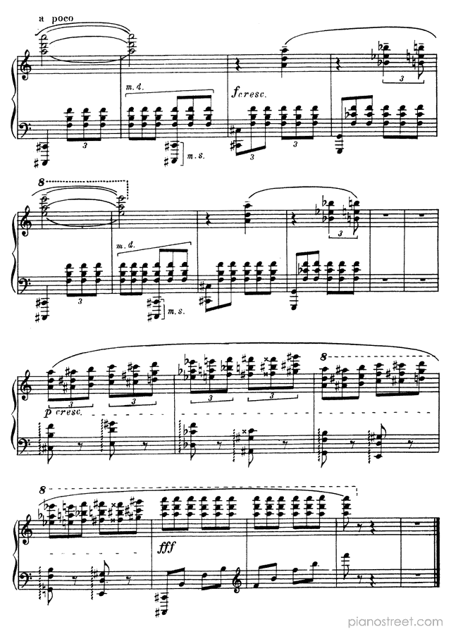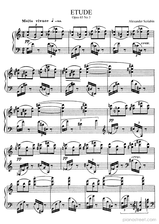 Etude - Op. 65 No. 3 is a piano piece by the late romantic composer Alexander Scriabin who lived between the years 1872 and 1915.