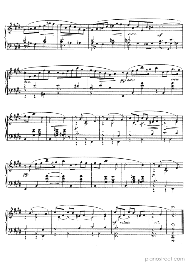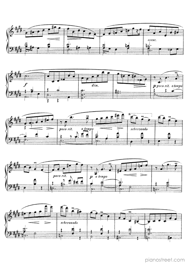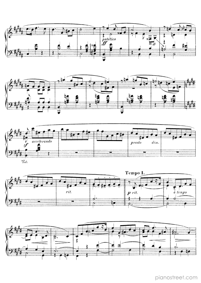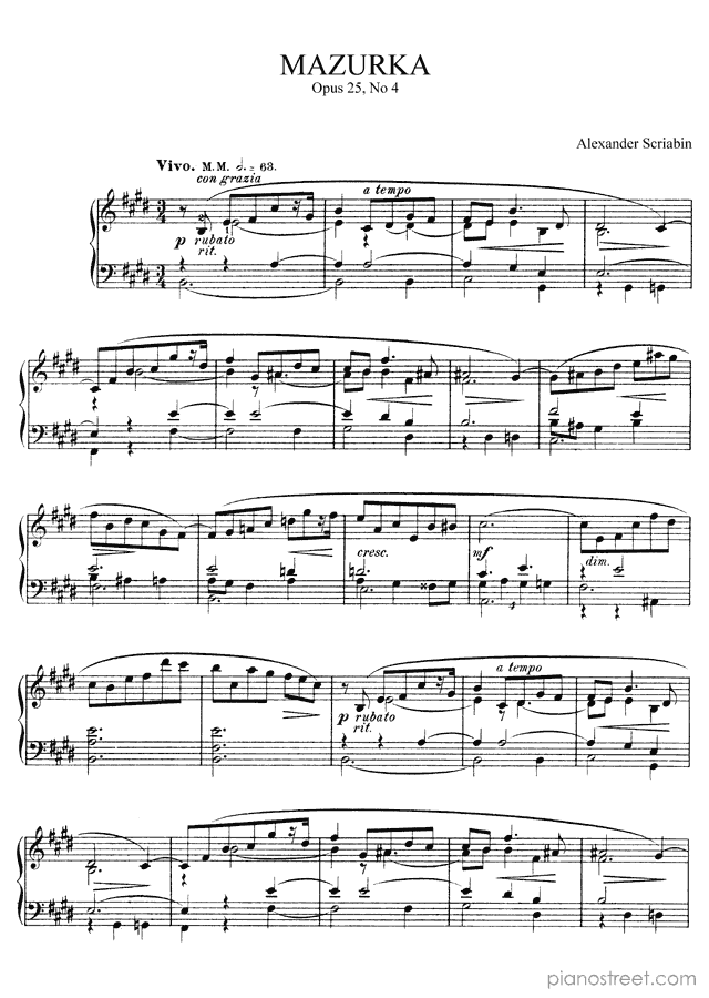 Downloadable piano sheet music from Mazurkas by Alexander Scriabin to print: Mazurka Op. 25 No. 4 in E Major (published in 1899)