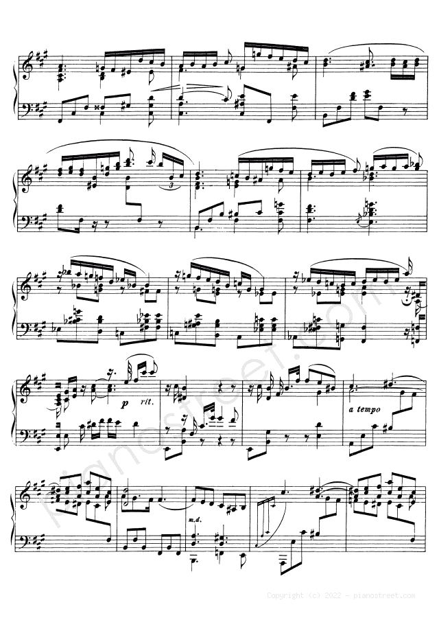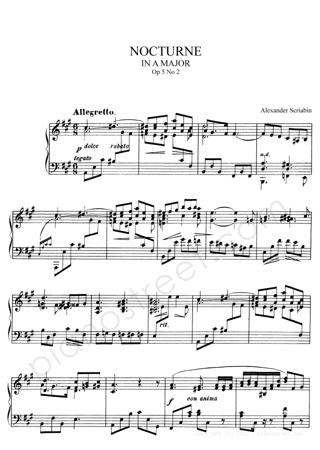 Late Romantic piano sheet music by Alexander Scriabin to download and print instantly: Nocturne Op. 5 No. 2 in the key of . Level 8, compositional type: (published in 1890)