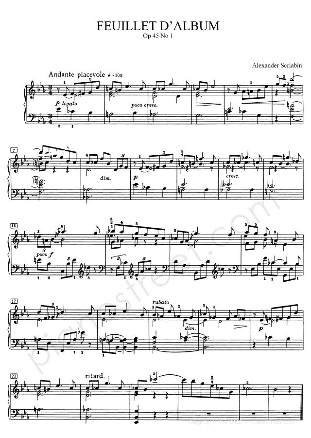 DOWNLOAD: Alexander Scriabin - Feuillet d'album Op. 45 No. 1 in E-flat Major ( from Poems and Miniatures by Scriabin). Piano sheet music to print immediately or to view in mobile devices.