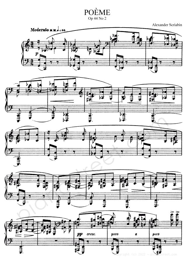 Downloadable piano sheet music from Poems and Miniatures by Alexander Scriabin to print: Poème Op. 44 No. 2 (published in 1904)