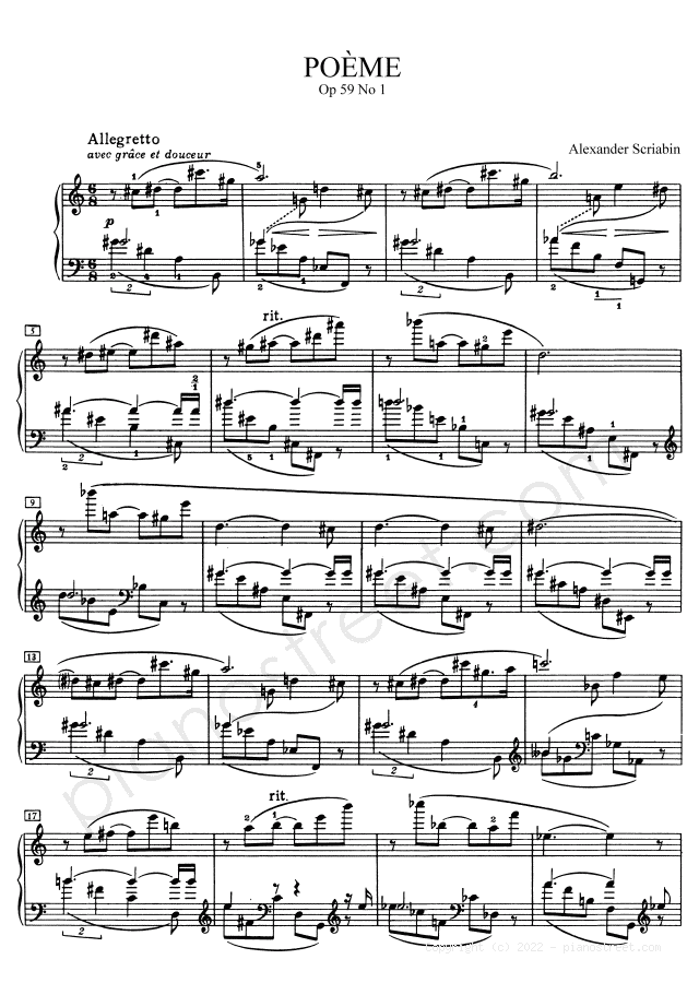 Scriabin: Poème Op. 59 No. 1 (published in 1911) . DOWNLOAD piano sheet music from Piano Street digital sheet music library.