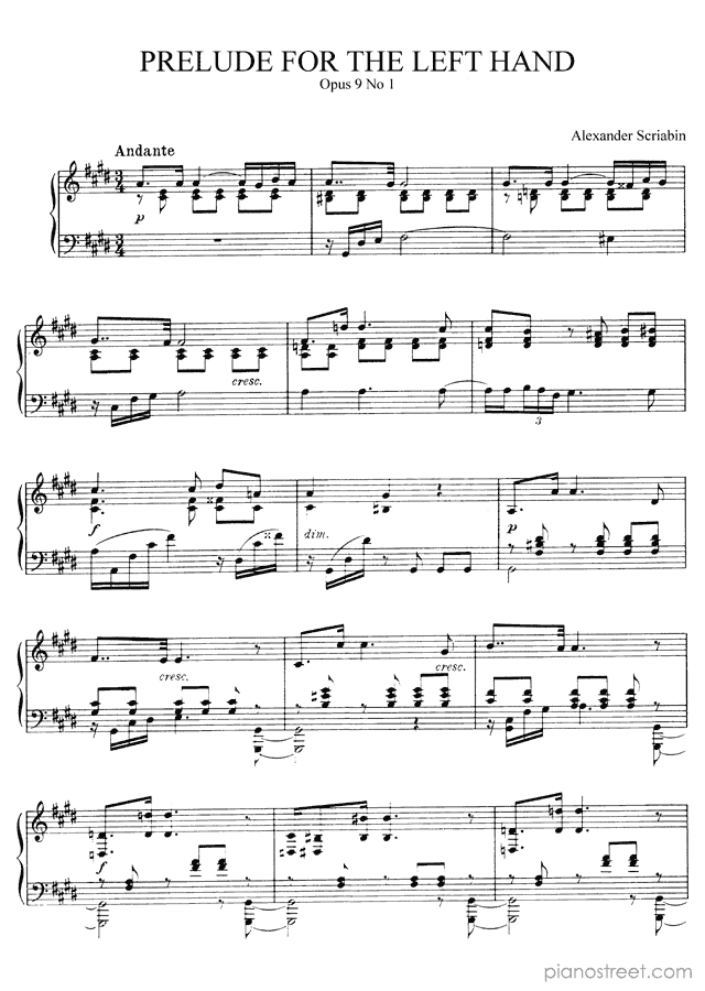 Hi I'd like to get Scriabin's prelude for the left hand (op 9.1), can anyone send it to me ? Are there other pieces that can be played with the left hand only...