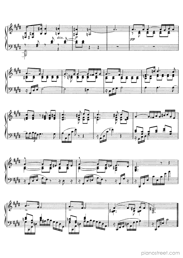 Alexander Scriabin, one of the prominent composers active in the Late Romantic era, has written this piece titled Prelude for the Left Hand Op. 9 No. 1 from Preludes. The composition is categorized as "Piece" in Piano Street's sheet music library and the level of difficulty is 8+.