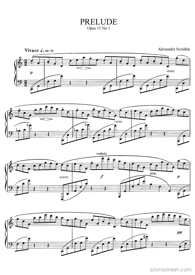 Downloadable piano sheet music from Preludes by Alexander Scriabin to print: Prelude Op. 11 No. 1 (published in 1896)