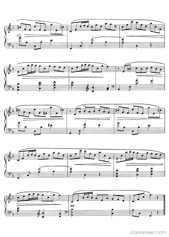 Prelude Op. 11 No. 23 in F Major, by the late romantic composer Alexander Scriabin. This piano piece was initially published in the year 1895 and is included in Preludes by Scriabin.