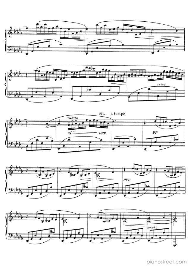 Prelude Op. 17 No. 3 in D-flat Major, by the late romantic composer Alexander Scriabin. This piano piece was initially published in the year 1896 and is included in Preludes by Scriabin.