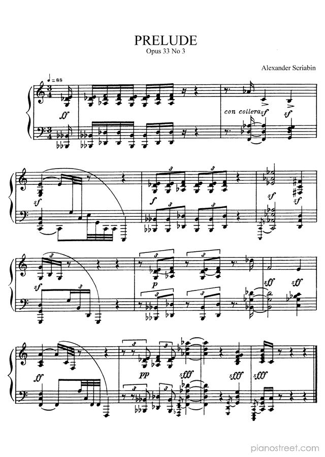 Downloadable piano sheet music from Preludes by Alexander Scriabin to print: Prelude Op. 33 No. 3 in C Major (published in 1903)