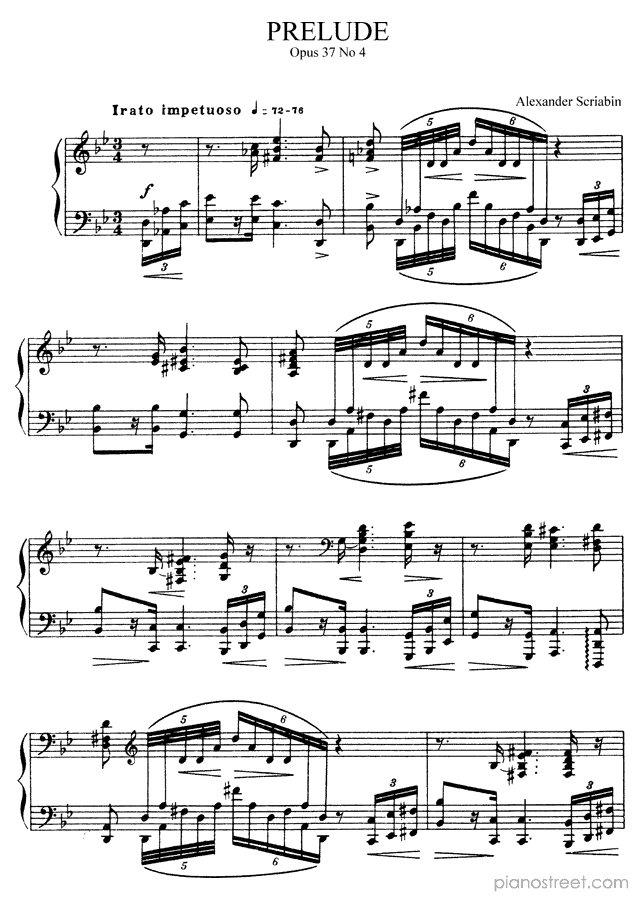 DOWNLOAD: Alexander Scriabin - Prelude Op. 37 No. 4 in G Minor ( from Preludes by Scriabin). Piano sheet music to print immediately or to view in mobile devices.