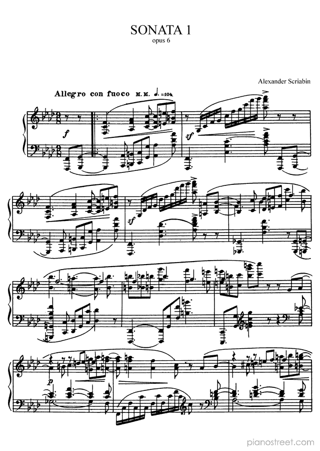DOWNLOAD: Alexander Scriabin - Sonata 1 Op. 6 in F Minor ( from Sonatas by Scriabin). Piano sheet music to print immediately or to view in mobile devices.