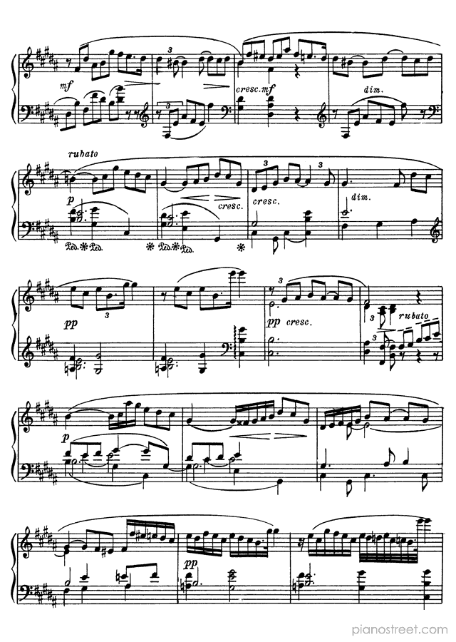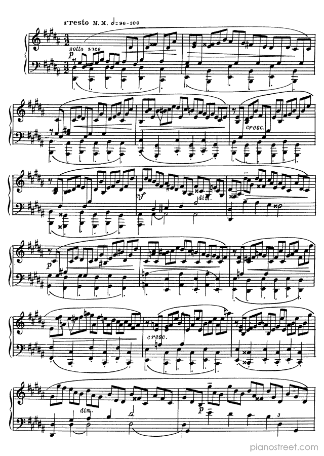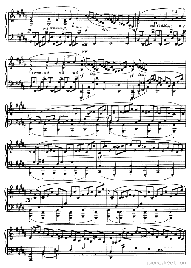Scriabin based his second sonata on a seaside holiday, using the keyboard to paint the images of waves, seagulls, and ocean breezes for the listener. The andante section is introverted and lovely while the stormy second movement brings a storm to the fore. The crescendos and decrescendos have been described both as crashing waves and ebbing and rising winds. The sonata stays true to Scriabin’s combination of 19th-century Romanticism and 20th-century impressionism to create one of the most popular of his works.
