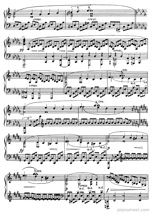 The first part evokes the calm of a night by the seashore in the South; in the development we hear the sombre agitation of the depths. The section in E major represents the tender moonlight which comes after the first dark of the night. The second movement, presto, shows the stormy agitation of the vast expanse of ocean.