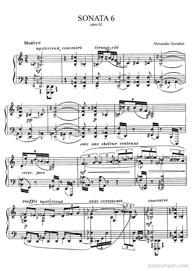 DOWNLOAD: Alexander Scriabin - Sonata 6 Op. 62 ( from Sonatas by Scriabin). Piano sheet music to print immediately or to view in mobile devices.