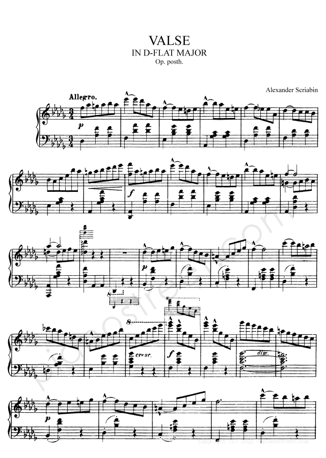 DOWNLOAD: Alexander Scriabin - Waltz WoO 8 in D-flat Major ( by Scriabin). Piano sheet music to print immediately or to view in mobile devices.