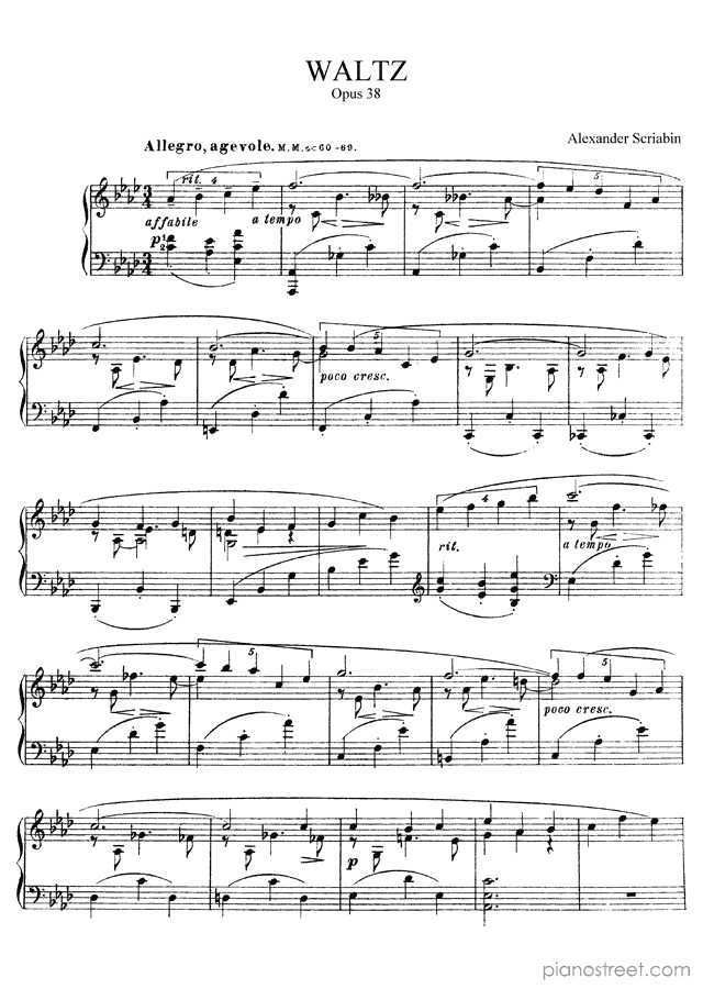Downloadable piano sheet music by Alexander Scriabin to print: Waltz Op. 38 in A-flat Major (published in 1903)