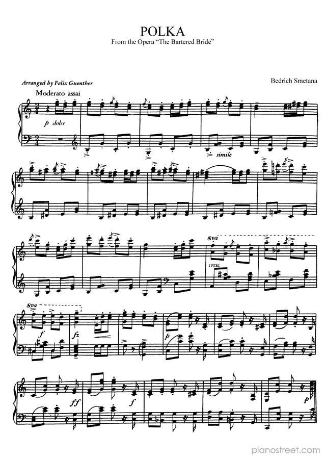 Bedrich Smetana: Polka from the Opera The Bartered Bride in C Major - piano sheet music to print instantly. This piece is level 3 and was composed during the Late Romantic period.