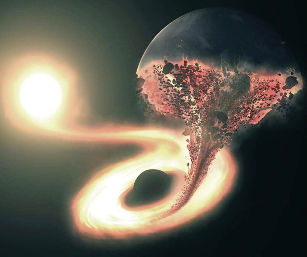 I don't think it would look like that.  I think it would be more gradual in some way.  Not that this pic is much better.  I don't think a black hole would spew anything out while it's eating a planet.