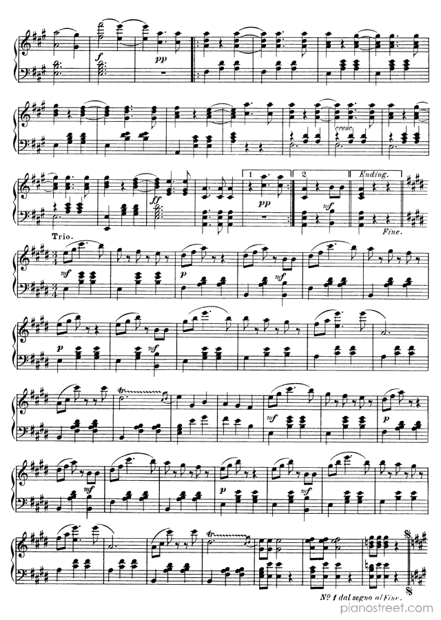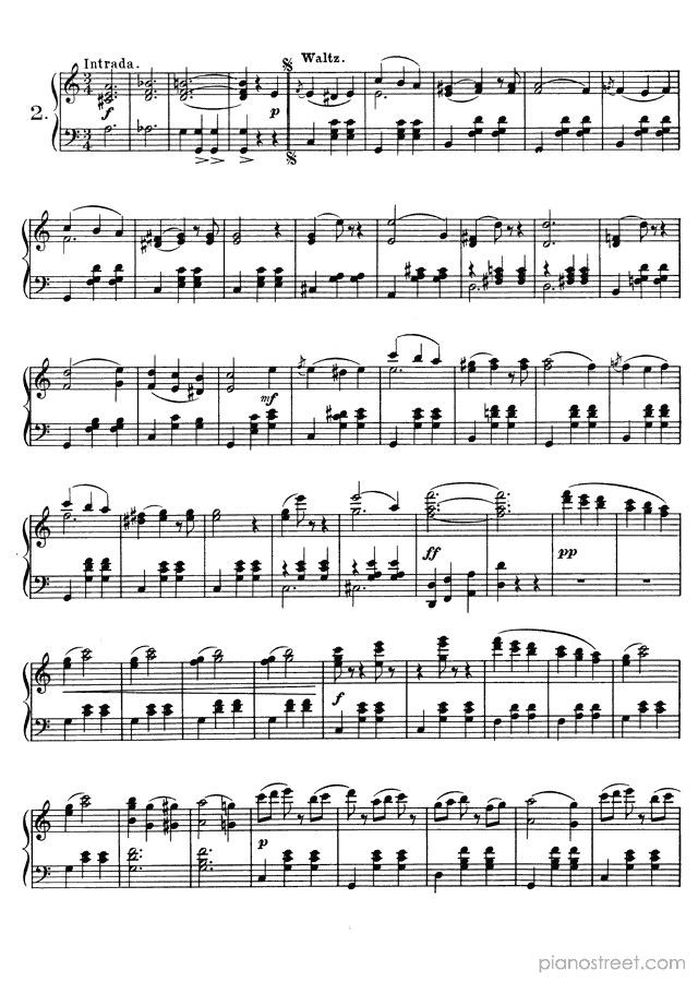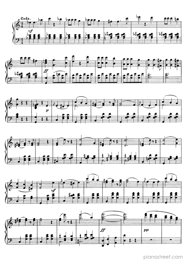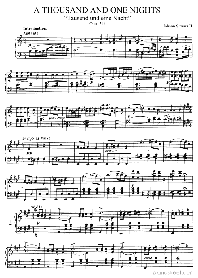 Piano sheet music downloads and recordings. This piece is from Waltzes by Johann Strauss II: A Thousand and One Nights Op. 346 in C Major (published in 1871) . Level 6, Period: Early Romantic