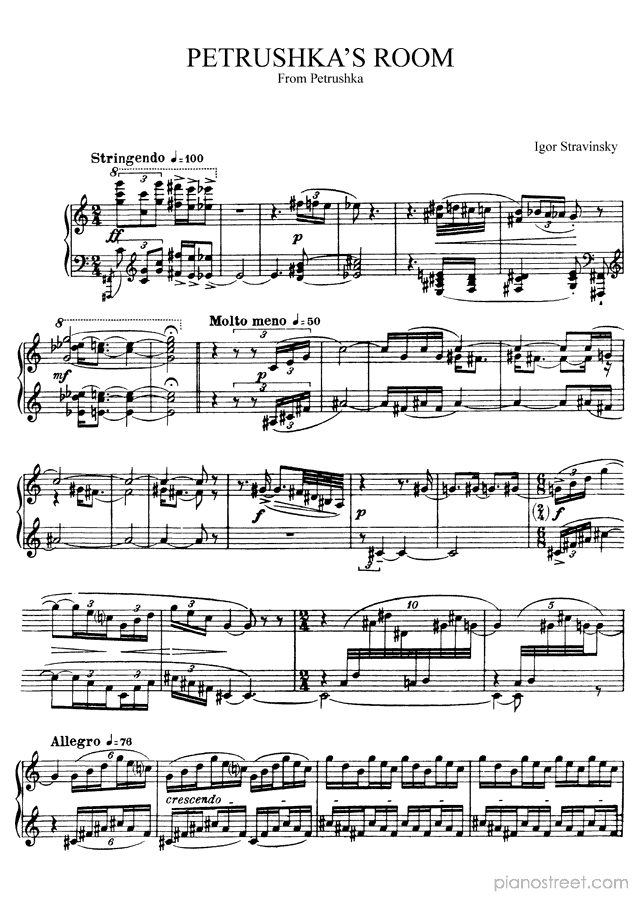 DOWNLOAD: Igor Stravinsky - Petrushka's Room No. 2 ( from Three Movements from Petrushka by Stravinsky). Piano sheet music to print immediately or to view in mobile devices.