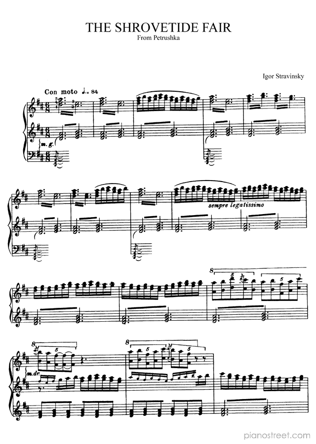 DOWNLOAD The Shrovetide Fair No. 3 by Igor Stravinsky (published in 1921) . High quality classical piano scores from the Piano Street sheet music library.