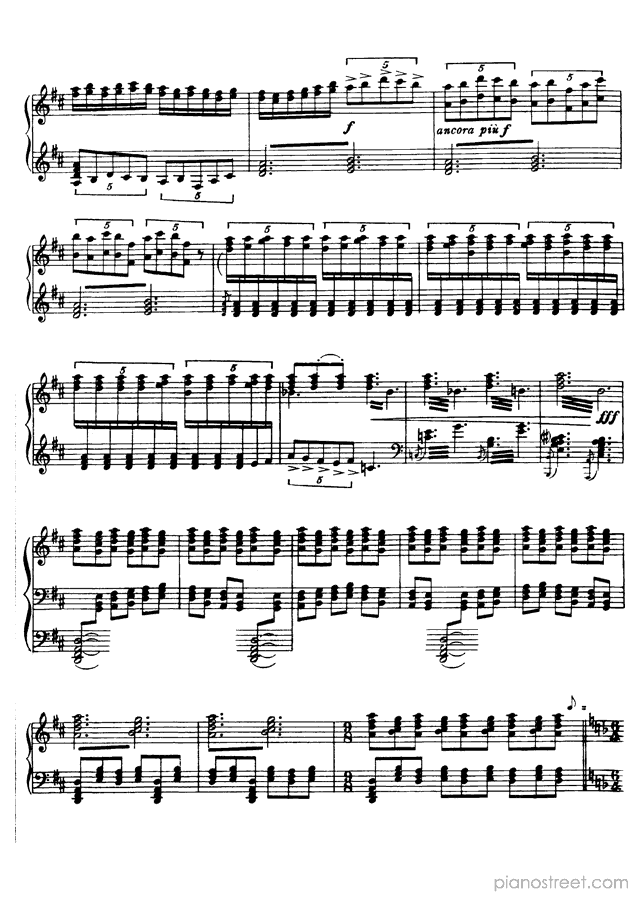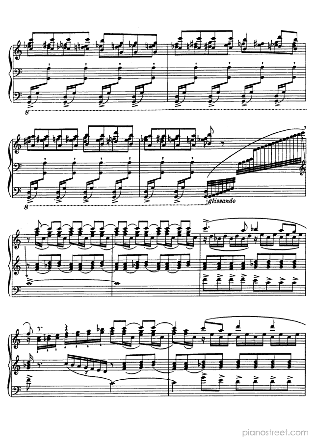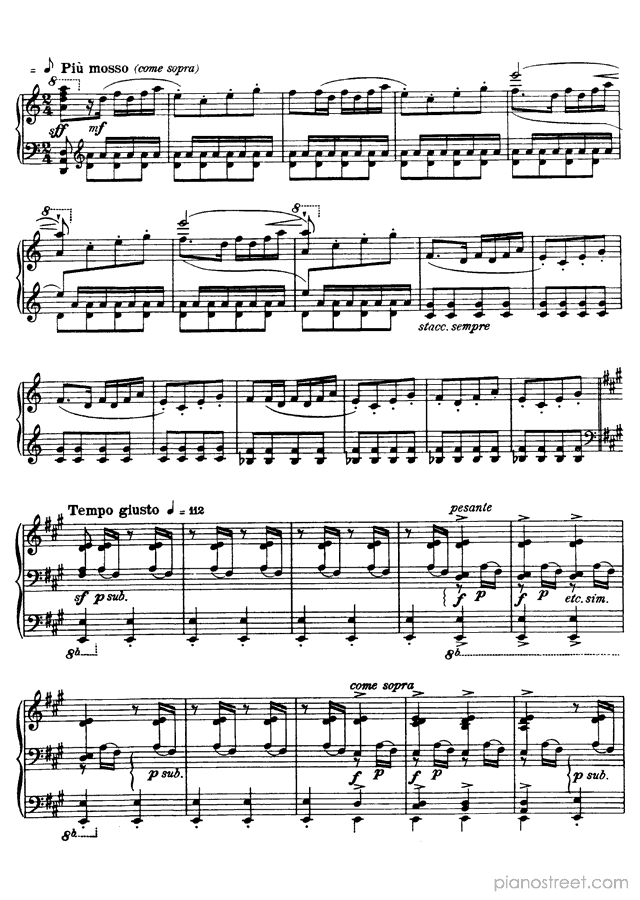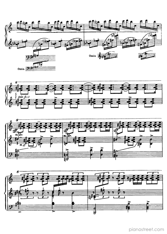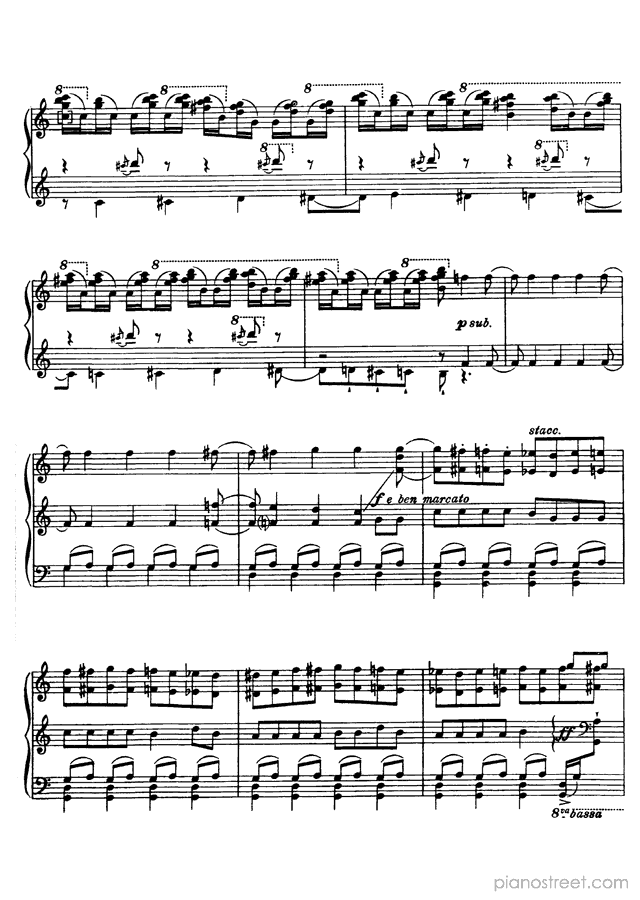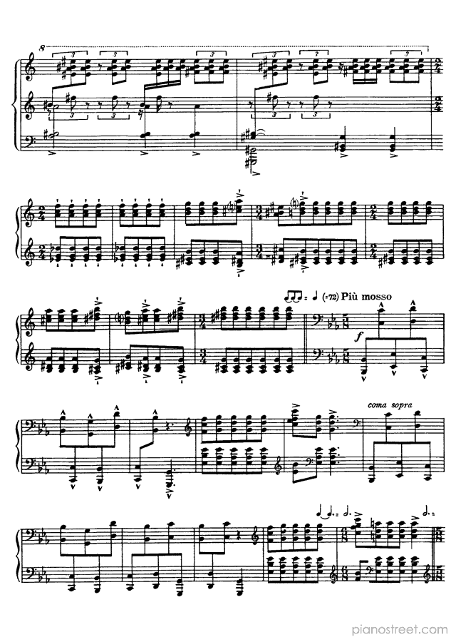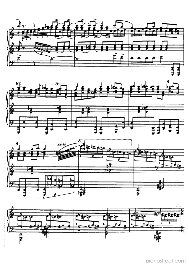Igor Stravinsky, one of the prominent composers active in the Modern era, has written this piece titled The Shrovetide Fair No. 3 from Three Movements from Petrushka. The composition is categorized as "Transcription" in Piano Street's sheet music library and the level of difficulty is 8+.
