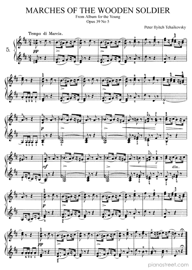 Tchaikovsky: Marches of the Wooden Soldier Op. 39 No. 5 in D Major (published in 1878) . DOWNLOAD piano sheet music from Piano Street digital sheet music library.