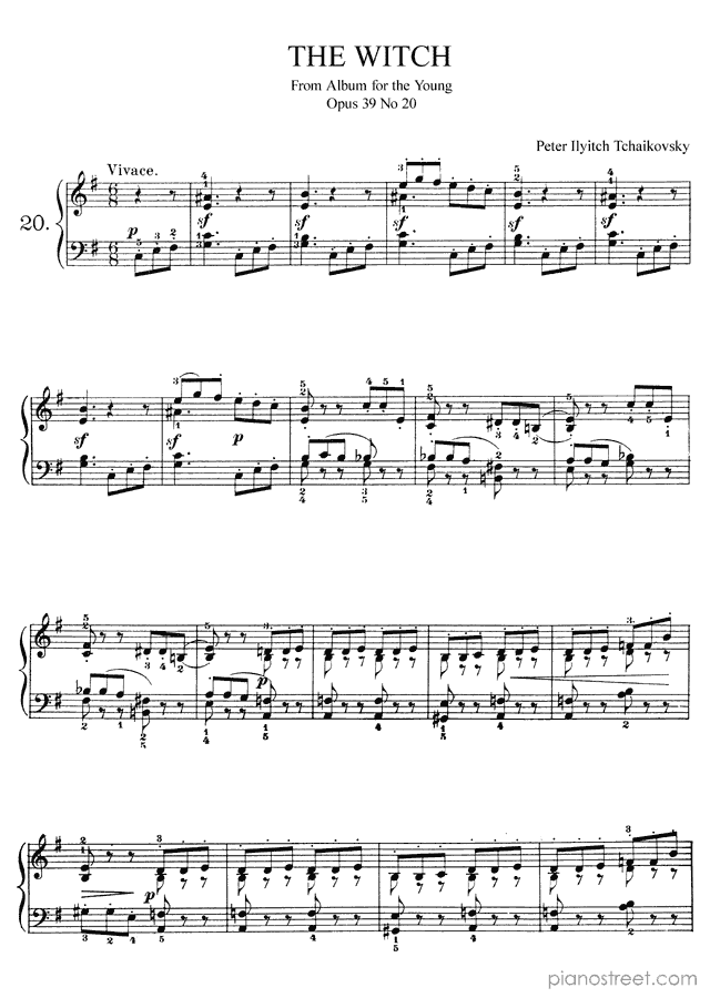 Downloadable piano sheet music from Album for the Young by Peter Ilyitch Tchaikovsky to print: The Witch Op. 39 No. 20 in E Minor (published in 1878)
