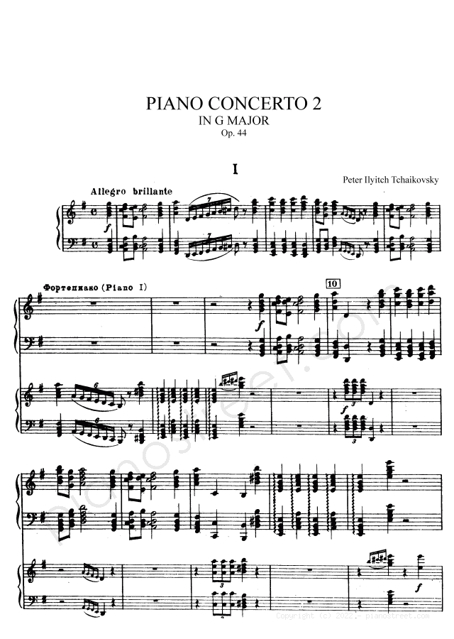 Piano Concerto 2 in G Major Op. 44 by Peter Ilyitch Tchaikovsky. Sheet music and recordings of thousands of piano pieces by Peter Ilyitch Tchaikovsky and many other famous composers to view in your digital device, print out or listen to.