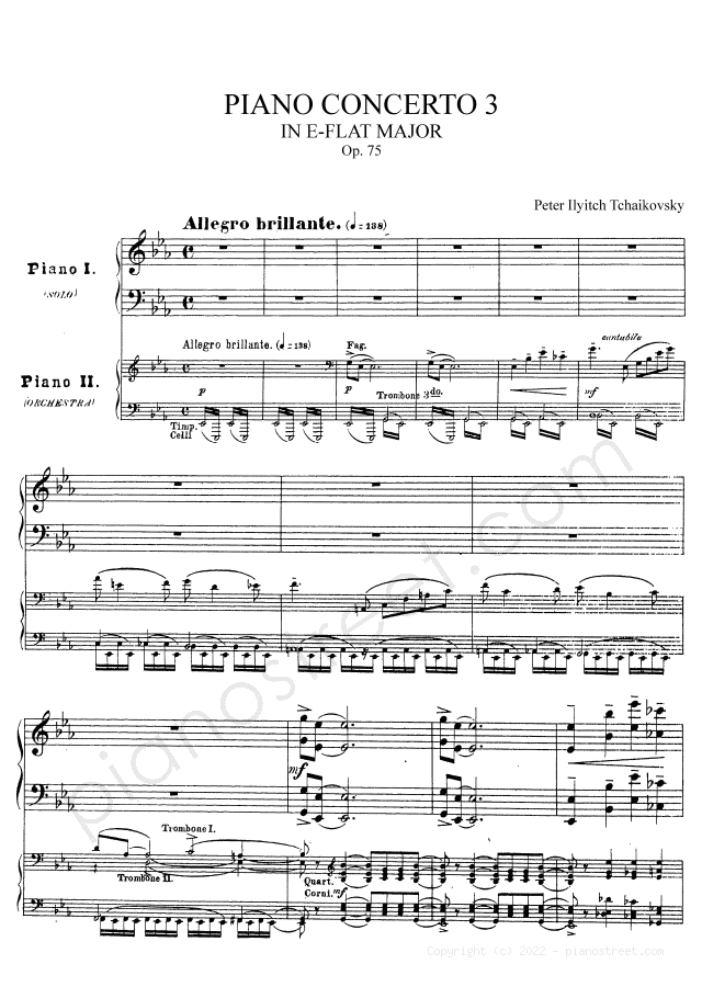 Piano Concerto 3 in E-flat Major - Op. 75 is a piano piece by the late romantic composer Peter Ilyitch Tchaikovsky who lived between the years 1840 and 1893.