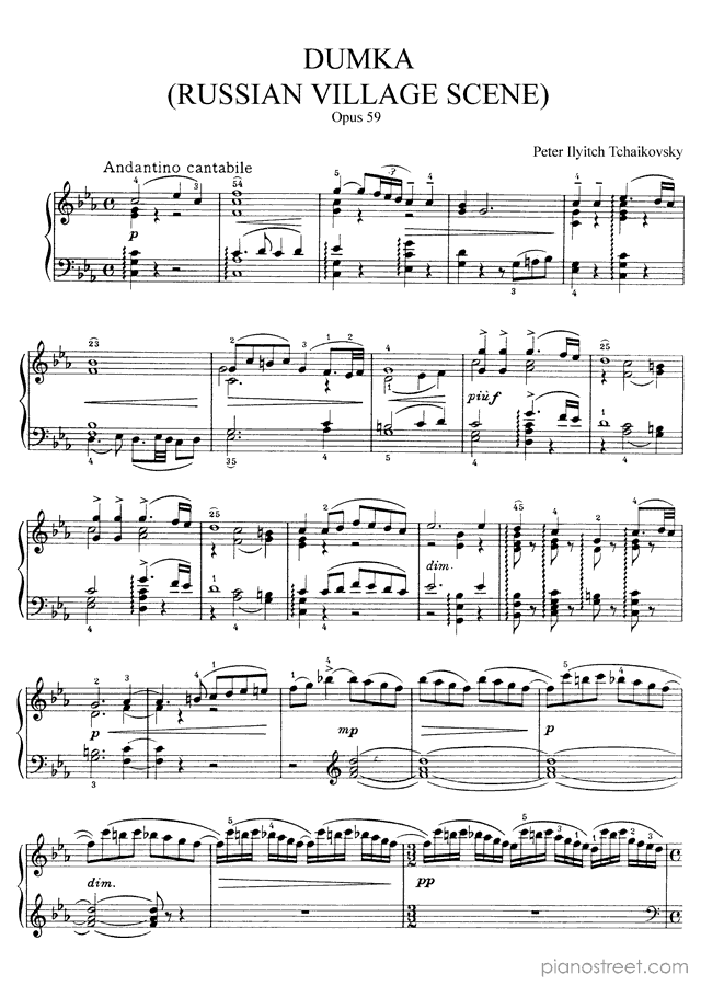 DOWNLOAD: Peter Ilyitch Tchaikovsky - Dumka Op. 59 in C Minor ( by Tchaikovsky). Piano sheet music to print immediately or to view in mobile devices.