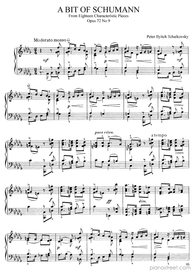 Tchaikovsky: A Bit of Schumann Op. 72 No. 9 in D-flat Major (published in 1893) . DOWNLOAD piano sheet music from Piano Street digital sheet music library.