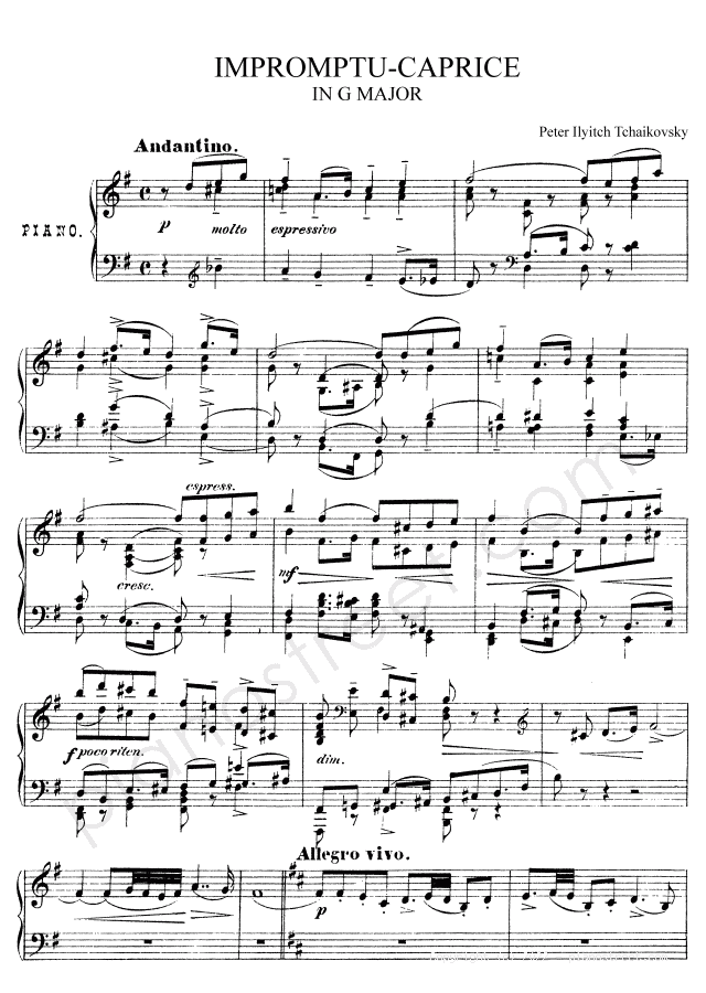 DOWNLOAD Impromptu-Caprice in G Major by Peter Ilyitch Tchaikovsky (published in 1884) . High quality classical piano scores from the Piano Street sheet music library.