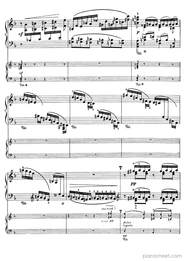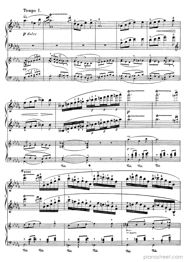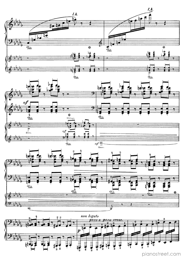 This concerto's famed introduction is instantly recognizable; a powerful motif in the horn section that quickly transitions into a memorable and passionate theme, supported by chords crashing across the full extent of the keyboard.