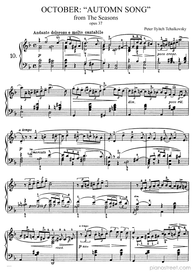 DOWNLOAD: Peter Ilyitch Tchaikovsky - October - Autumn Song Op. 37 No. 10 in D Minor ( from The Seasons by Tchaikovsky). Piano sheet music to print immediately or to view in mobile devices.