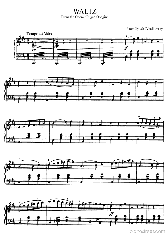 Tchaikovsky: Waltz from the Opera Eugen Onegin in D Major . DOWNLOAD piano sheet music from Piano Street digital sheet music library.