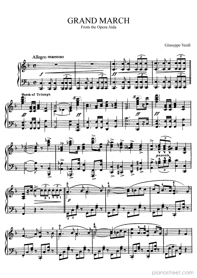 "Grand March" from the Opera Aida in F Major - is a piano piece by the late romantic composer Giuseppe Verdi who lived between the years 1813 and 1901.