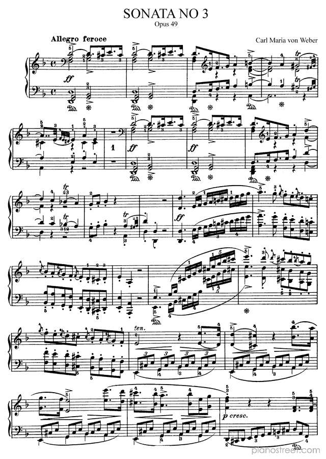 Sonata 3 in D Minor - Op. 49 is a piano piece by the early romantic composer Carl Maria von Weber who lived between the years 1786 and 1826.