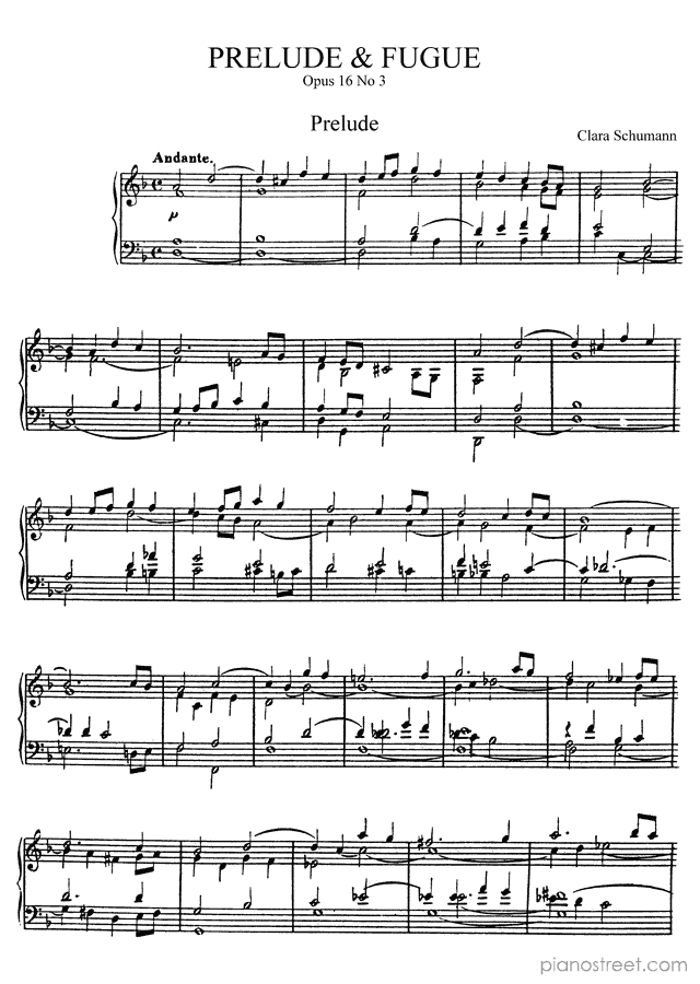 Prelude & Fugue in D Minor - Op. 16 No. 3 is a piano piece by the early romantic composer Clara Wieck-Schumann who lived between the years 1819 and 1896.
